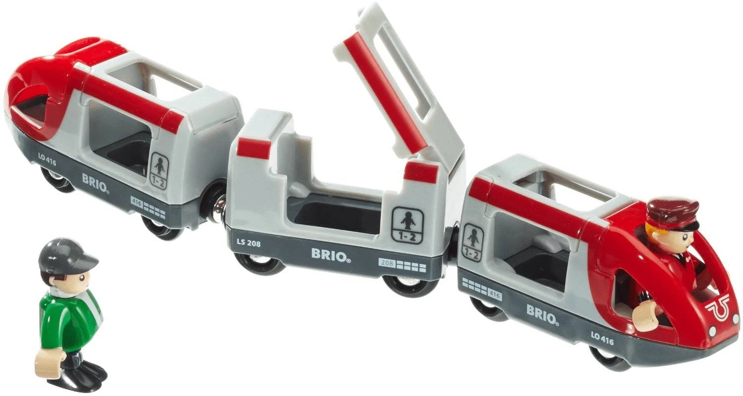 All aboard! A perfect travel train, for any BRIO train track, with front, middle and rear wagons as well as a passenger and driver included. The red line train is ready to take passengers to their destinations.