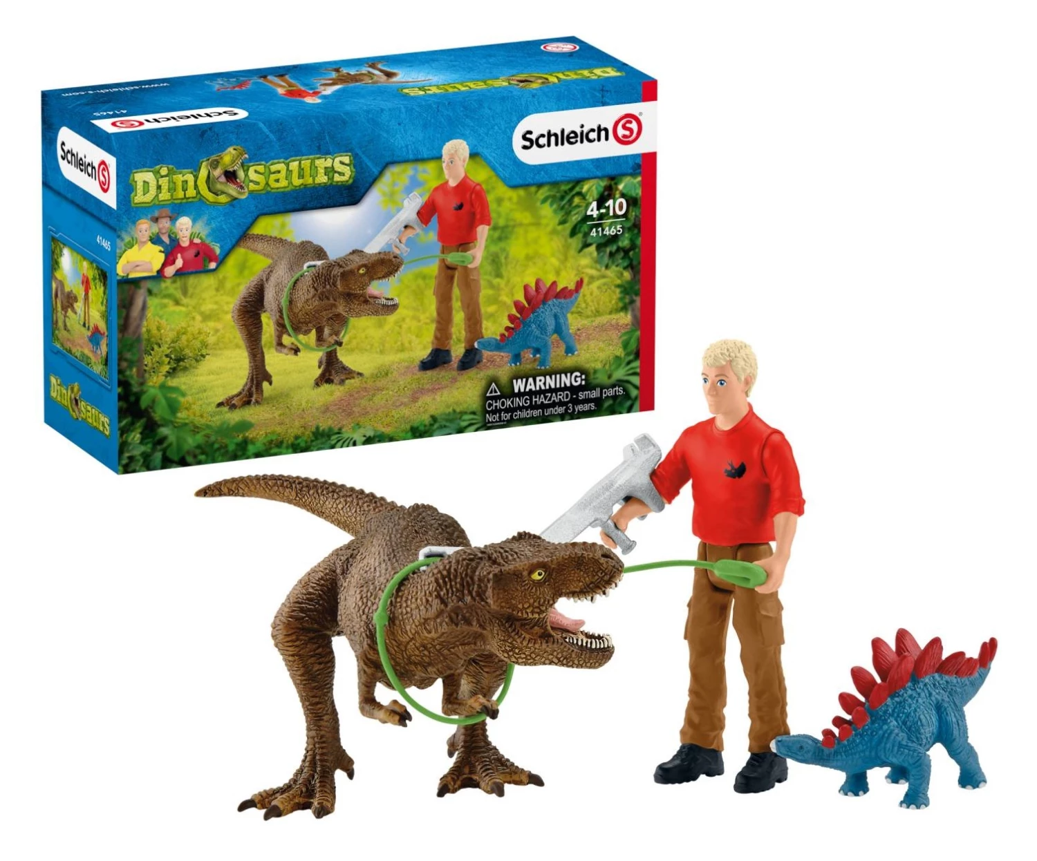 Contents: 1x Tyrannosaurus Rex, 1x Researcher Flynn, 1x Staff Weapon, 1x Baby Stegosaurus